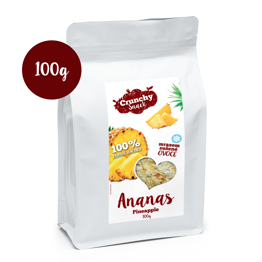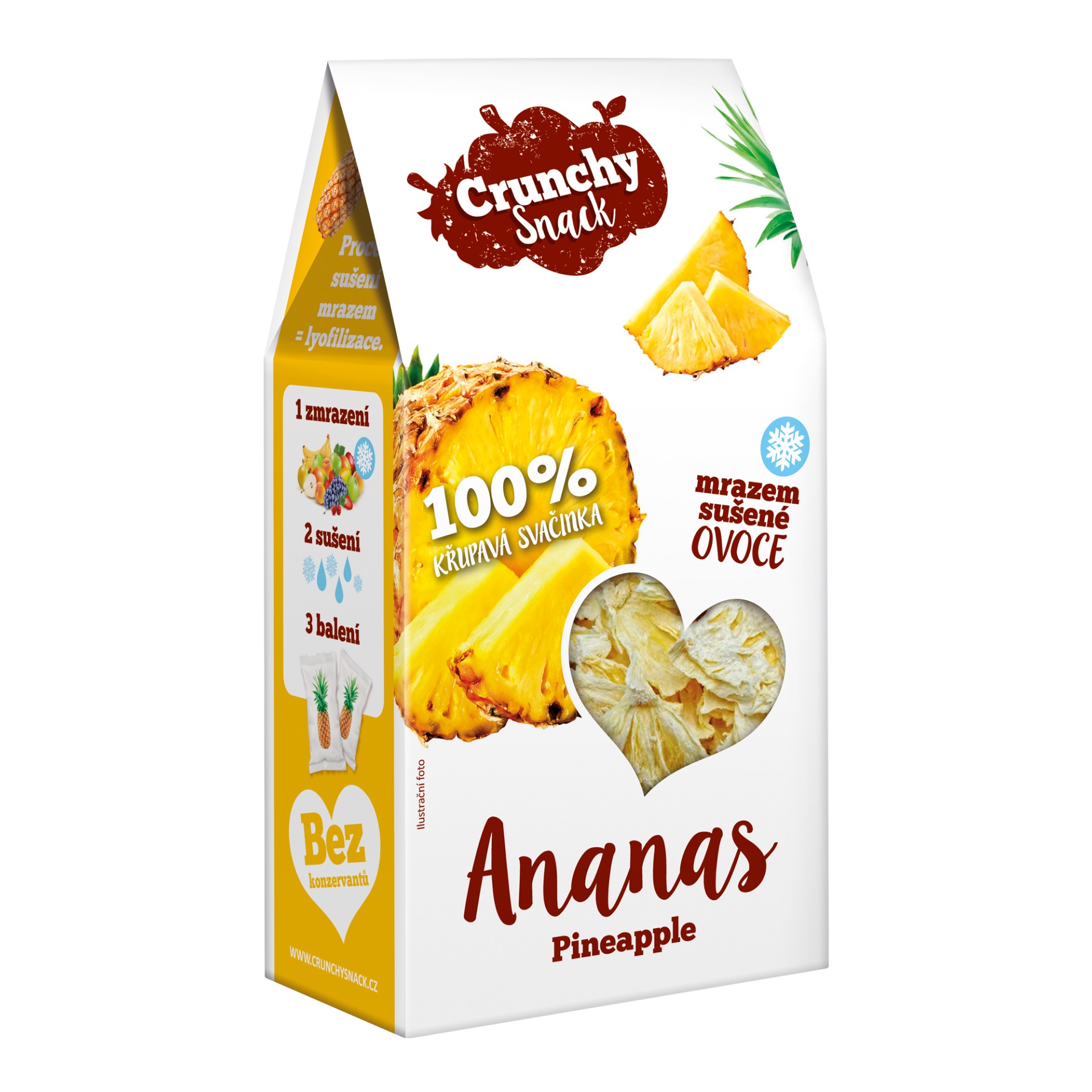 Crunchy snack lyofilizovaný ananas je zdravá a křupavá svačinka plná vitaminů a minerálů bez přidaných barviv a konzervantů.