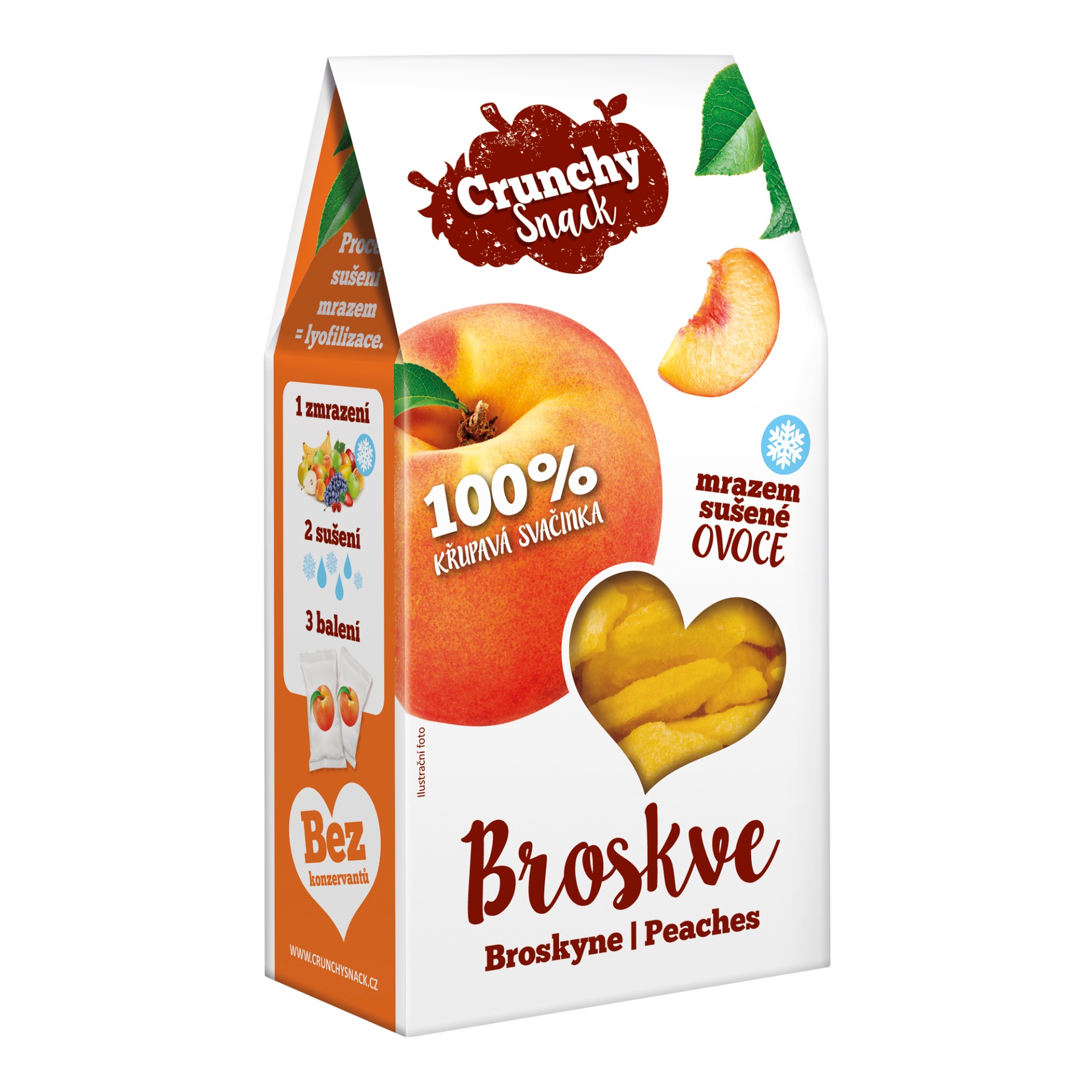 Crunchy snack lyofilizované broskve je zdravá a křupavá svačinka plná vitaminů a minerálů bez přidaných barviv, cukru a konzervantů.