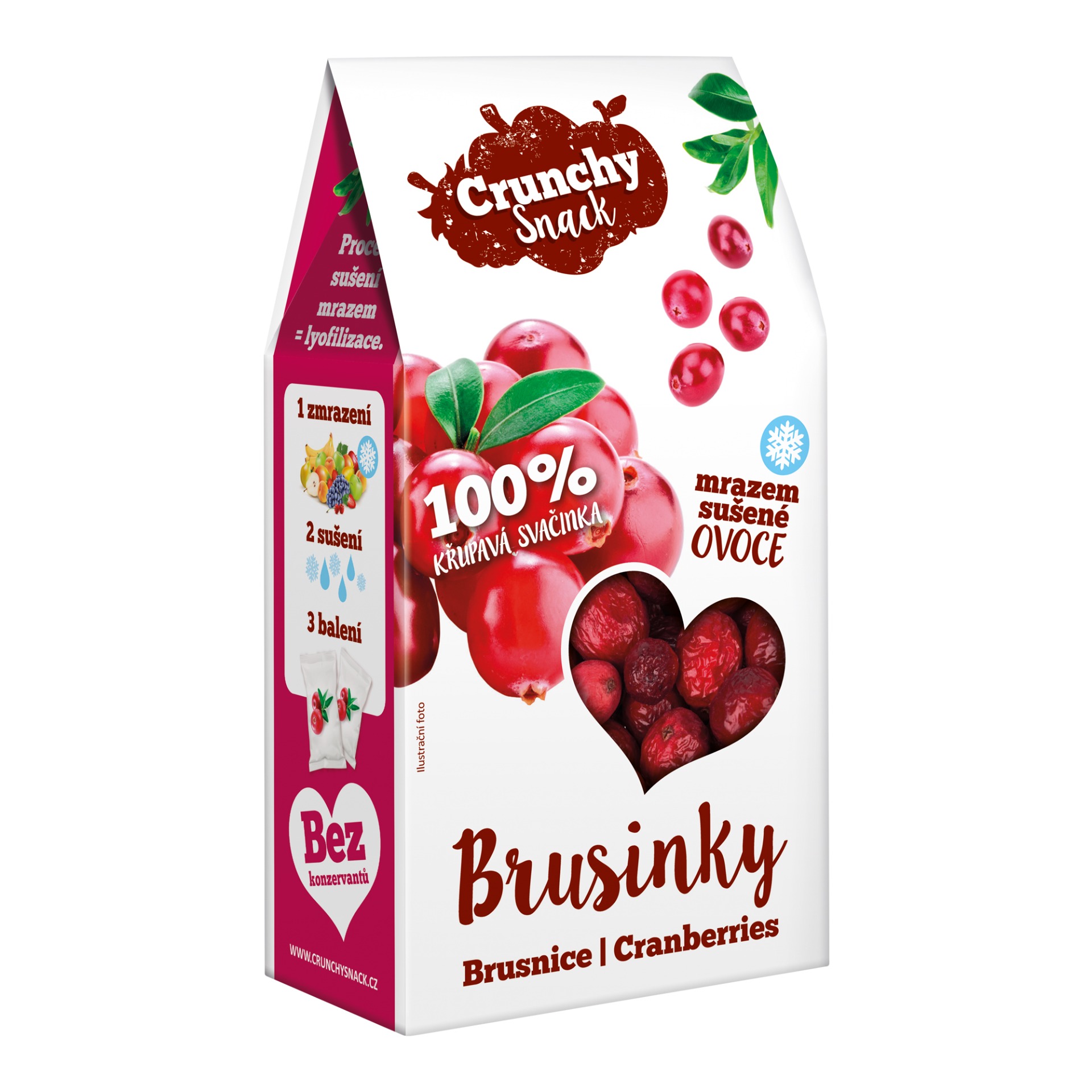 Crunchy snack lyofilizované kanadské brusinky je zdravá a křupavá svačinka plná vitaminů a minerálů bez přidaných barviv a konzervantů.