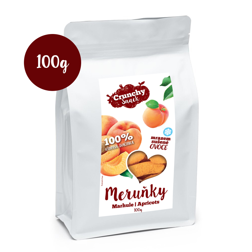 Crunchy snack lyofilizované meruňky je zdravá a křupavá svačinka plná vitaminů a minerálů bez přidaných barviv, cukru a konzervantů.