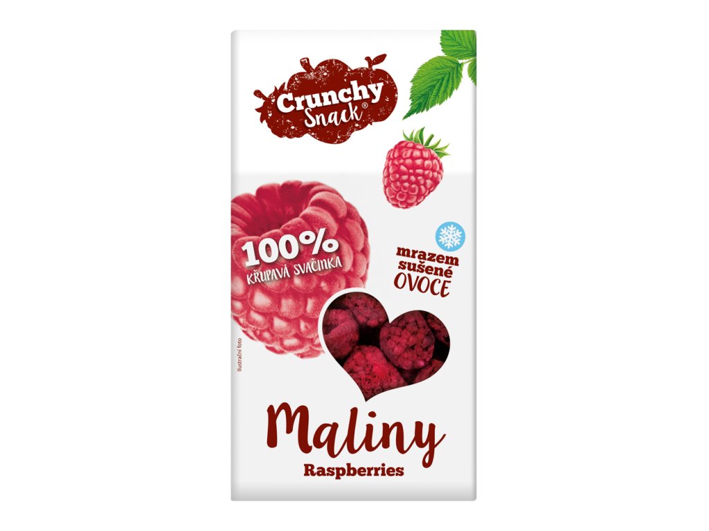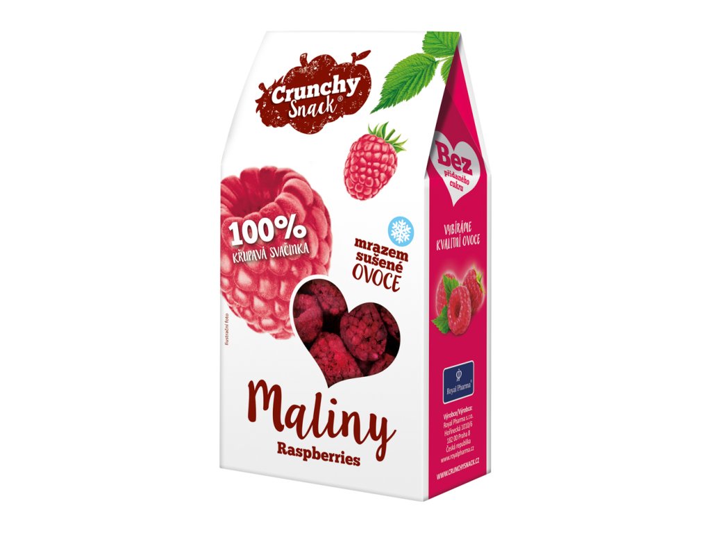 Crunchy snack lyofilizované maliny je zdravá a křupavá svačinka plná vitaminů a minerálů bez přidaných barviv a konzervantů.