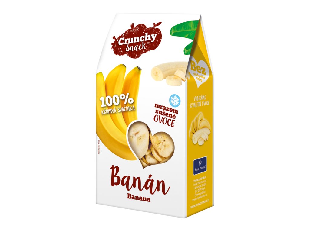 Crunchy snack lyofilizovaný banán je zdravá a křupavá svačinka plná vitaminů a minerálů bez přidaných barviv a konzervantů.
