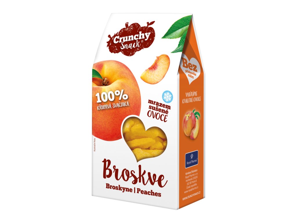 Crunchy snack lyofilizované broskve je zdravá a křupavá svačinka plná vitaminů a minerálů bez přidaných barviv a konzervantů.